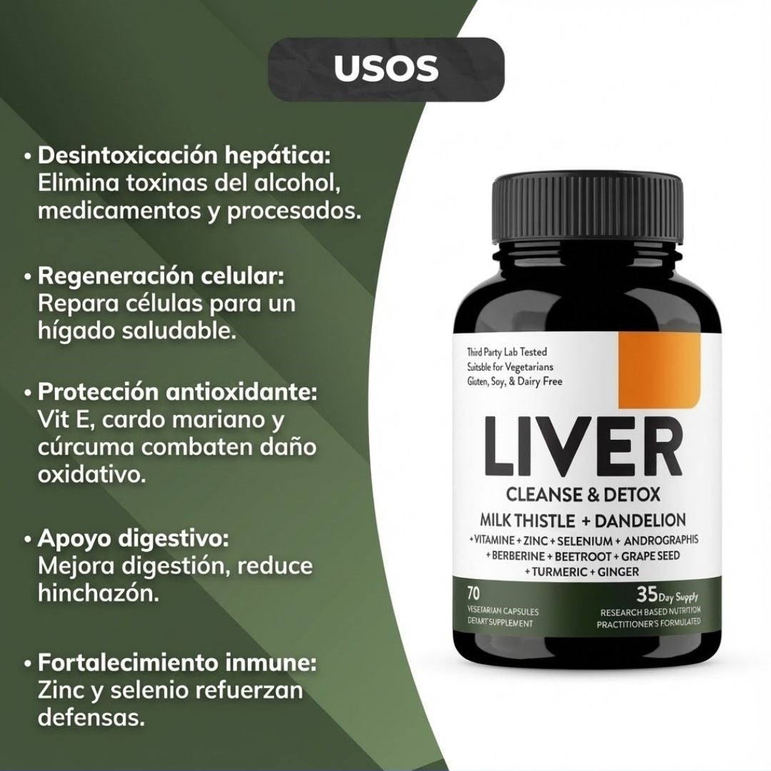 Apoya tu bienestar digestivo y siente tu cuerpo más liviano con Liver Cleanse & Detox, formulado con extractos naturales que ayudan a reducir la sensación de hinchazón y a mantener el equilibrio interno.
